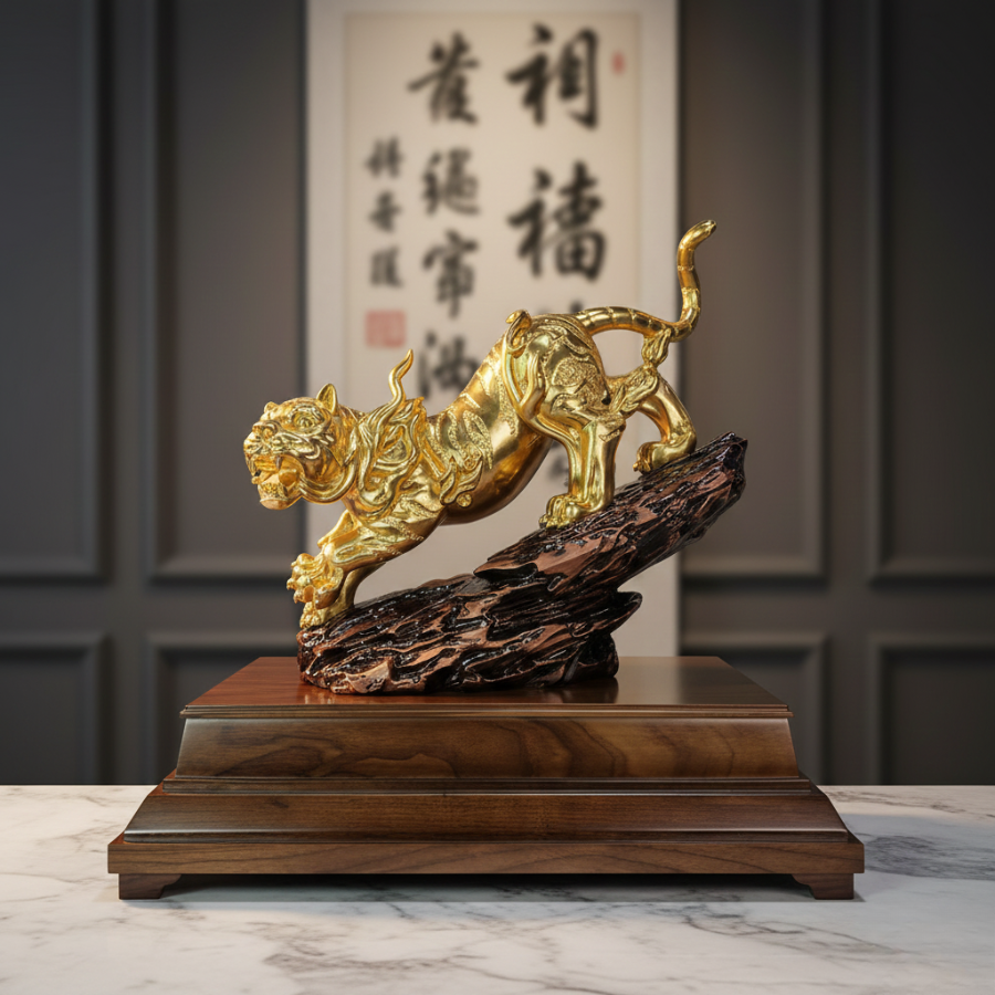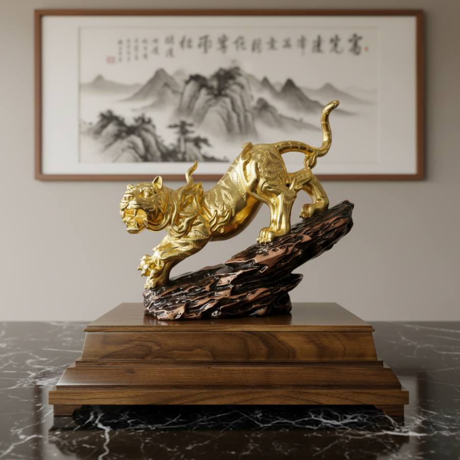 Biểu trưng Bạch Hổ dát vàng 24K không chỉ là vật trưng bày mà còn là một điểm neo tinh thần trong phong cách sống hiện đại.
